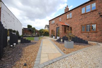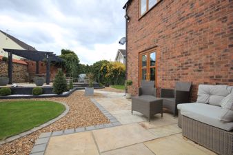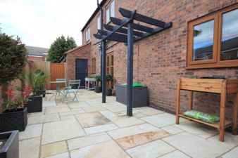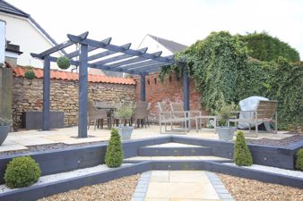 OUTSIDE To the front of the property is a driveway with wrought iron electric gates giving access to a graveLled driveway providing parking for three/four vehicles. There is an Indian stone path that leads to the front door and contemporary landscaped front garden with ambient lighting. There are circular turfed areas, one of which features the original stone gate post, surrounded with edging and pebbles and steps that lead to the Indian stone paved patio with wooden pagoda. The Indian stone path continues to the side and rear of the property where there is a further seating area with pagoda, two sheds and log store and outside security lighting.