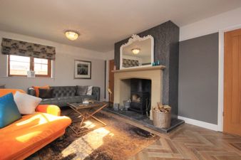 LOUNGE17' 5" x 12' 9" (5.32m x 3.89m) The focal point of this delightful Lounge is the stone fire place with tiled back and hearth inset to which is a multi fuel burner. Also fitted is a bronzed effect Victorian style central heating radiator, engineered wood flooring, a television aerial point, a telephone point, picture rail to the walls, two upvc double glazed windows, one viewing to the rear of the property the other to the side and the upvc double glazed patio doors opening to the front of the property.