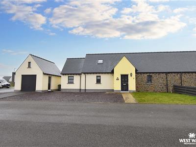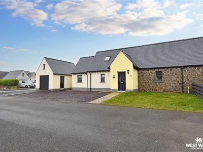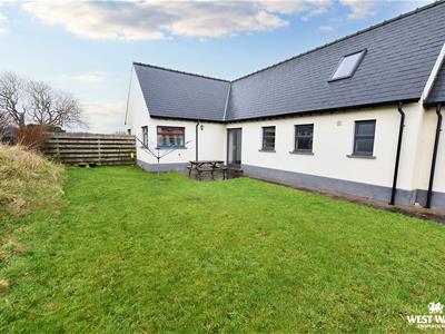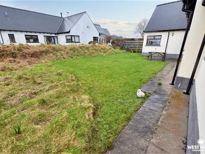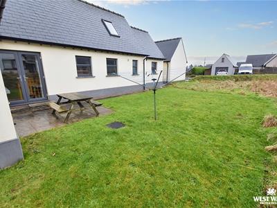 Externally to the front, there is a lawned garden which extends as far as the road to the side, there is a gavelled parking area, and a driveway which leads to the garage. To the rear is a garden mainly laid to lawn which is bordered by a Pembrokeshire bank and hedge.