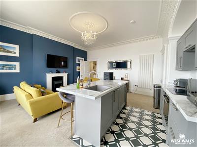 Designed with modern living in mind, the property offers the perfect blend of character features and contemporary decor. The heart of the home is the open plan living/kitchen/diner, which features the original fireplace and decorative cornicing. The focal point of the room is the gorgeous bay window, which captures those idyllic sea views. The high spec kitchen is fitted with a range of modern appliances, and features an island with quartz worktop and breakfast bar. This space is ideal to gather around, while entertaining your family and friends. Further accommodation includes the modern family bathroom, and two double bedrooms. The property benefits from a bright and neutral decor throughout, with high ceilings creating a sense of space. There is also electric heating.