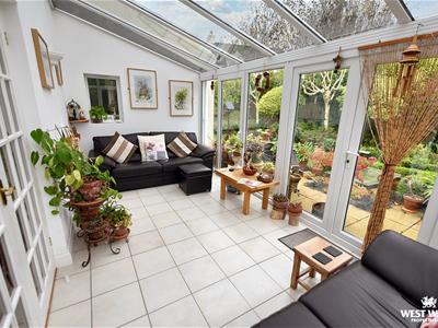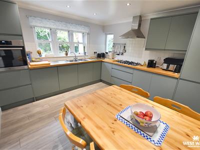 Externally, a block paved driveway provides ample off road parking, and access to the detached double garage. At the rear, there is a very well tended garden which is laid to lawn and patio with decorative bedding areas.