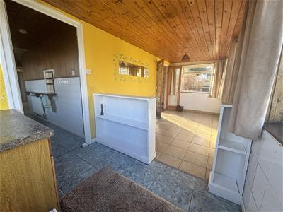 The layout of the property briefly comprises an entrance hall, a living room with a gas effect fire, and a sunroom with a door leading to the back garden. A galley kitchen opens out to a dining area. The internal hallway leads through to a utility room, separate WC, bathroom with both a shower and a bath fitted with a lift assist, and two double bedrooms. The property would benefit from some improvements but offers bundles of potential, and is served by gas central heating.