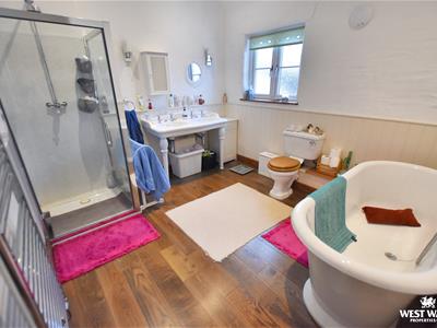 The layout of the property comprises of an entrance porch and hallway, three fantastic reception rooms plus an open plan kitchen/dining room, a utility with downstairs WC and a downstairs bedroom with adjoining shower room. On the first floor is an open landing space leading through to three double bedrooms, the master bedroom boasts a dressing room and en-suite shower room, and the other two bedrooms benefit from fitted wardrobes. There is a family bathroom with a beautiful roll top bath 'his and hers' wash hand basin and a separate shower unit. The property is served by underfloor heating and solar panels giving reduced energy bills.
