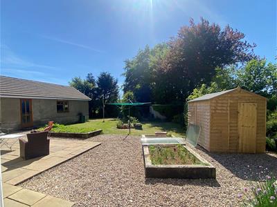 Outdoors, the gardens to the front and rear are filled with mature plants, fruit trees, and raised beds—perfect for growing produce or enjoying the outdoors. The adjoining field, part of the total 2.26-acre plot, provides ample scope for grazing, planting, or leisure use. A detached double garage with loft storage and wide driveway offers easy vehicle access and storage for trailers, caravans, or equipment.