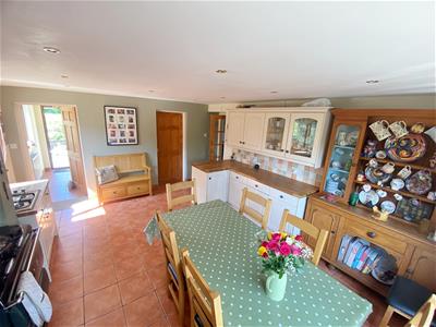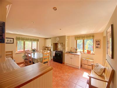The accommodation is bright and thoughtfully arranged. There are three well-proportioned double bedrooms, plus an adaptable ground-floor room that can be used as a fourth bedroom, study, or creative space. The heart of the home is an open-plan living and dining area that flows into a well-appointed kitchen and separate utility. A recently installed log burner creates a welcoming focal point, ideal for cosy evenings. Upstairs, the main bedroom enjoys an en-suite and views over the surrounding land.