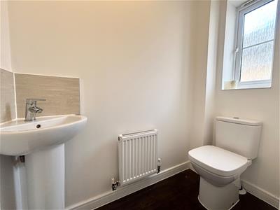 The property features a spacious kitchen/diner and a large separate lounge, along with a convenient downstairs WC. Outside, there is a driveway and garage, with additional access to the garage from the garden.