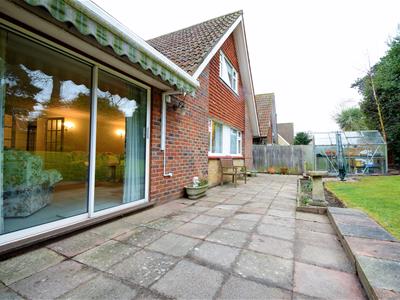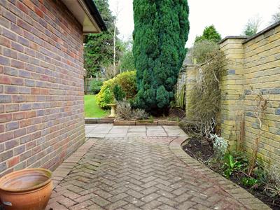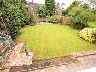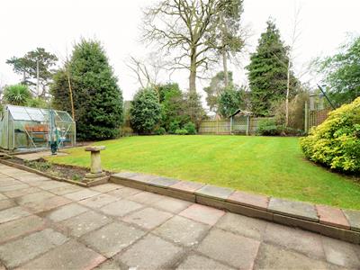 A plot in excess of 50ft wide, the rear garden stretches to approximately 60-65ft in length and comprises a spacious block paved wider than average side access behind the garage, leading to paved patio that stretches the full width of the garden. The rear garden is mainly laid to lawn with mature borders offering well manicured and attractive bushes, shrubs and trees. To the front and side is a green house, there is a further paved patio area to the rear of hte garden and the far corner offers a screened area where the garden shed can be found.
