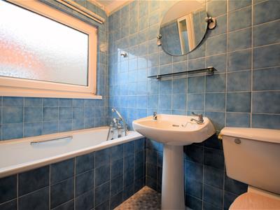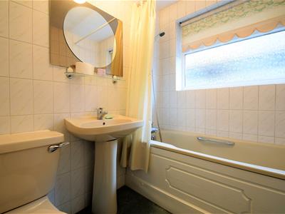 2.18m x 1.68m (7'2 x 5'6)White painted door, carpet to floor, fully tiled walls, cream colour bathroom suite comprising bath with shower mixer over, pedestal hand basin and low level WC, obscured glass UPVC double glazed window, radiator, ceiling light fitting.