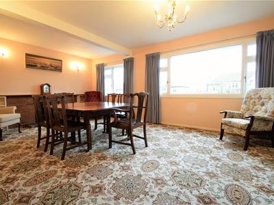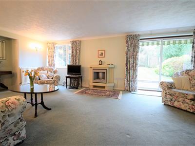 6.81m x 4.57m (22'4 x 15'0)Double glass panelled doors from entrance hall, carpet to floor, wallpapered walls, wall lights, double radiator, ceiling coving, UPVC double glazed window, double glazed sliding patio doors leading to garden.