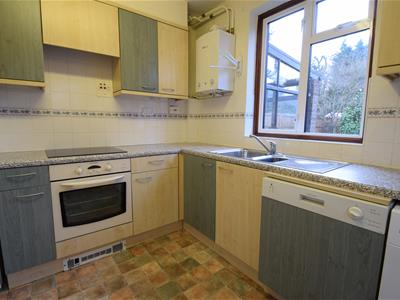 2.87m x 2.72m (9'5 x 8'11)Varnished wood door, tile effect vinyl flooring, a range of wood fronted kitchen cabinets with laminated worktops, tiled splash back, stainless steel sink and drainer unit with chrome mixer tap, Worcester gas boiler, built in electric oven and electric hob, spaces for appliances, double glazed window and double glazed rear door leading out to side access and garden, heating & hot water programmer.