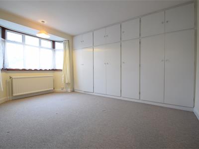 4.57m max into bay x 3.20m to front of wardrobes (Varnished wood door, neutral carpet, cream emulsion walls, double glazed bay windows, full wall length built in wardrobes with white doors, ceiling light fitting, radiator.