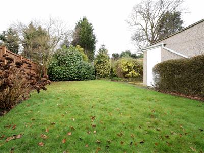 To the rear of the house is a garden stretching to approximately 80ft in length, comprising a lawned area to the front half, some mature trees and bushes to the centre of the garden and a further rear section of the garden accessed via a meandering footpath between the trees and hedges. There is a detached garage with metal up and over garage door and a separate doorway to the rear.