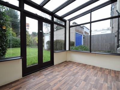 3.40m x 2.31m (11'2 x 7'7)Wood effect vinyl flooring, cream emulsion painted walls, dark wood framed windows and wood French doors leading out to garden.
