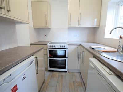 2.08m x 2.08m (6'10 x 6'10)Open to living room, Modern grey colour gloss finish kitchen suite, modern laminate worktops, modern circular sink and drainer unit with chrome mixer tap, wood effect vinyl flooring, tiled splash back,,UPVC double glazed window, spaces for appliances, ceiling light fitting.