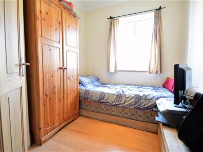 2.62m x 2.36m (8'7 x 7'9)Solid wood panelled door, wood laminate flooring, neutral emulsion painted walls, UPVC double glazed window, built in cupboard to corner, ceiling light fitting, radiator.