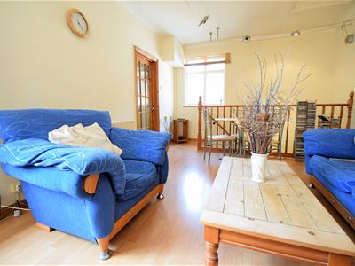 5.87m max over staircase x 3.56m (19'3 max over stWood laminate flooring, neutral emulsion painted walls, coving to ceiling, cable lighting, double radiator, two UPVC double glazed windows (one to rear, one to side), large storage cupboard housing gas boiler.