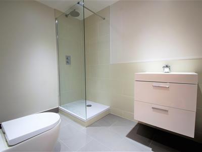 Through the front door at ground floor level, you enter the spacious open plan living room with wood flooring and neutral decoration. To the rear of the living room is an open plan modern gloss grey integrated kitchen suite, to the front is bedroom 2 and to the rear of the ground floor is the beautiful shower room with walk-in shower.