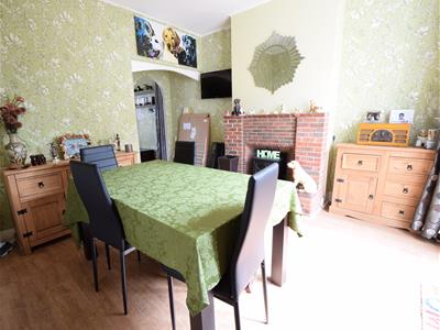 5.16m max x 3.68m (16'11 max x 12'1)Wood and glass panelled entry door, wood laminate flooring, wallpapered walls, UPVC double glazed windows, gas fire with attractive wooden fire place surround and tiled hearth, double radiator, ceiling light fitting, leaded oval shape port hole window.