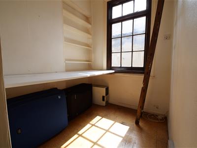 1.88m x 1.57m (6'2 x 5'2)Cork floor tile, wall paper, single glazed panelled window, ceiling light fitting.