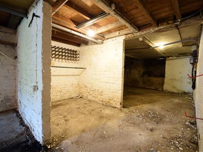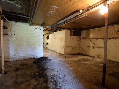 A basement comprising the same footprint as the ground floor of the house, partitioned out into separate areas, and with near standing height space. Lighting and power.