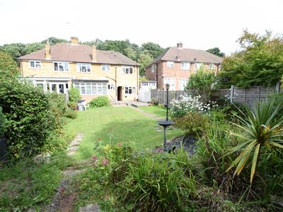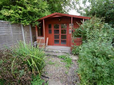 The rear garden stretches to approximately 80-85ft, there is a concrete patio, a main lawned area, a timber shed/summer house, mature shrubs and plants, and a fruit tree, fenced boundaries to both sides.
