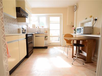 3.40m max x 2.84m max (11'2 max x 9'4 max)Tile effect vinyl flooring, cream colour kitchen cabinets, light beige colour laminate worktops, breakfast bar, larder cupboard, door to conservatory, UPVC double glazed window, ceiling light fitting, radiator.