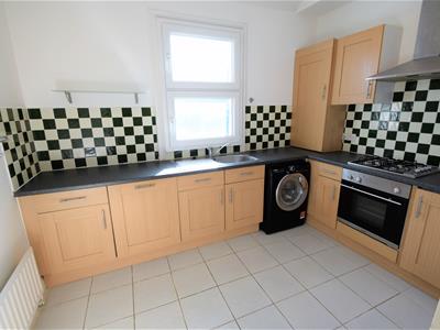 3.43m x 2.44m (11'3 x 8'0)Steps down from living room, neutral colour ceramic floor tile, wood effect shaker style kitchen suite, integrated under counter fridge, integrated dish washer, black laminated counter tops, space for washing machine, splash back tiles, external sash window with internal double glazed UPVC windows, stainless steel sink and drainer unit with chrome mixer tap, combination gas boiler, gas hob and electric oven, stainless steel extractor hood, lighting.
