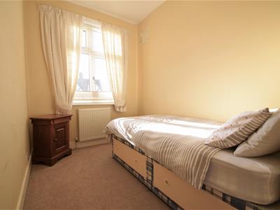 2.64m x 1.98m (8'8 x 6'6)White painted panelled door, neutral emulsion painted walls, neutral carpet, double glazed window, radiator, ceiling light fitting.