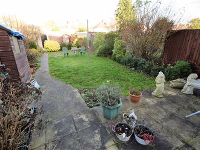 The rear garden extends to approximately 70-75ft, there is a paved patio, central lawn with pathway leading to end of garden, planted beds with some shrubs and bushes, side access gate, detached garage with access via a residents access road to the rear.