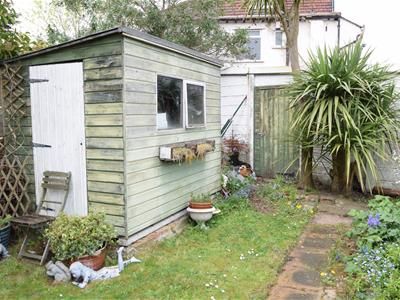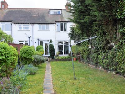There is a front garden with low level walled front boundary, and the rear garden stretches to appromimately 80ft with large patio, lawned area, mature planted borders, a timber storage shed and a detached garage with rear access.