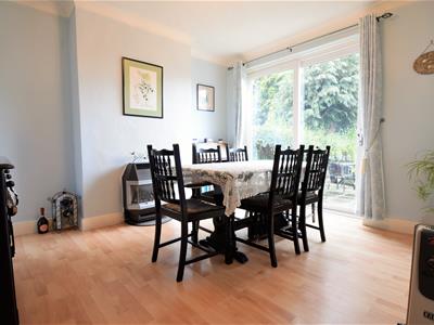 3.68m x 3.33m max recesses (12'1 x 10'11 max recesWhite painted panelled door, wood effect laminate flooring, blue emulsion over wall paper, gas fire, UPVC double glazed sliding patio door to garden, coving, ceiling light fitting.