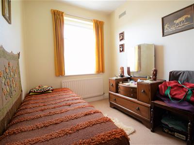 2.79m x 2.13m (9'2 x 7'0)White painted panelled door, carpet, neutral emulsion paint over wall paper, white aluminium framed double glazed window, ceiling light fitting, radiator.