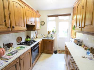 3.71m x 2.08m (12'2 x 6'10)Wood fronted kitchen suite, cream gloss finish marble effect laminated counter tops, double glazed window and door to garden, stainless steel sink and drainer unit, gas hob, oven, spaces for washing machine and fridge freezer, ceiling light fitting, tile effect vinyl flooring, cream splash back tiling.