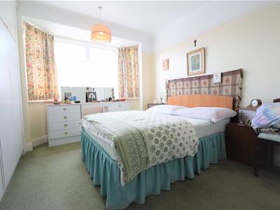 4.52m max bay x 3.35m max recess (14'10 max bay xWhite painted panelled door, carpet, cream emulsion paint over wall paper, white aluminium framed double glazed bay window, ceiling light fitting, large range of built in wardrobes, ceiling light fitting, radiator.