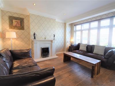 4.39m max into bay x 3.66m max into recesses (14'5Solid wood panelled door, double glazed window to front bay, gas coal effect fireplace with limestone surround, double radiator, coving, wall papered walls, oak flooring, spot lights.