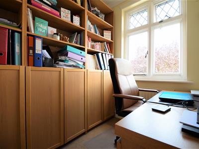 2.34m x 1.96m (7'8" x 6'5" )Solid wood panelled door, single glazed window to front with leaded lattice top openers, neutral painted walls, radiator, air vent, neutral carpet, ceiling light fitting, coving,
