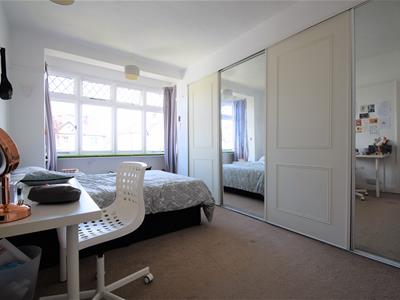 4.78m into bay x 3.33m into recesses (15'8" into bSolid wood panelled door, Single glazed window to front bay with leaded lattice top openers, neutral painted walls, fitted wardrobes with sliding mirrored and panelled doors, double radiator, picture rail, neutral carpet, ceiling light fitting.