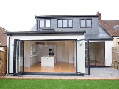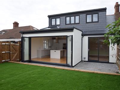 With all of the work having just been completed by the current owners, the property comprises to the ground floor a welcoming spacious entrance hall, two generous double bedrooms, a beautiful fully tiled bathroom suite, a huge open plan kitchen/diner with engineered wood flooring and a fabulous grey integrated kitchen suite with large island and white/grey colour solid stone counter tops, integrated appliances and a cleverly designed corner walk-in larder cupboard, large bi-folding doors to fully open the rear of the house to the garden, and a spacious lounge which also benefits from engineered wood flooring and sliding patio doors leading out to the garden patio.