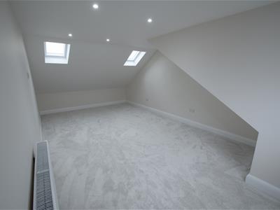 6.20m max (reduced headroom) x 3.40m max (20'4 maxWhite painted door, grey carpet, neutral emulsion painted walls, sloping ceilings, UPVc double glazed window to rear and 2 double glazed velux windows to front, spot lights to ceiling, radiator, wall TV point.