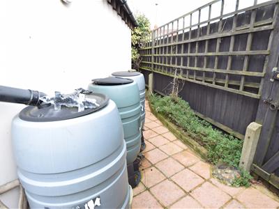 To the front is a paved garden with fenced boundary and a wrought iron entrance gate. There is a side access towards the rear garden through a locked gate.