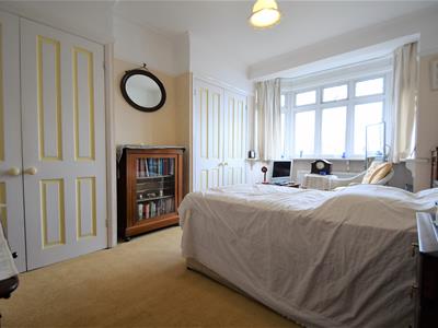 4.85m max bay x 3.43m max recesses (15'11 max bayWhite painted panelled door, neutral carpet, wall paper, picture rail, coving, two built in wardrobes with panelled doors, UPVC double glazed bay window, ceiling light fitting, radiator.