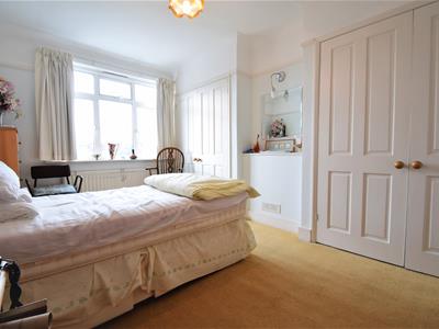 4.29m x 3.35m max recesses (14'1 x 11'0 max recesswhite painted panelled door, neutral carpet, wall paper to walls, picture rail, coving, two built in wardrobes with panelled doors, radiator, ceiling light fitting, UPVC double glazed window.
