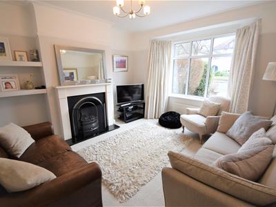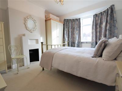4.22m max bay x 3.35m max recess (13'10 max bay xSolid wood panelled door, neutral carpet, light grey emulsion painted walls, picture rail, UPVC double glazed bay windows, tiled fireplace surround, coving, ceiling light fitting, radiator.