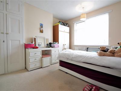 4.37m x 3.35m max into recess (14'4 x 11'0 max intWhite painted wood panelled door, neutral colour carpet, neutral emulsion painted walls, UPVC double glazed window, built in cupboard, ceiling light fitting, double radiator.