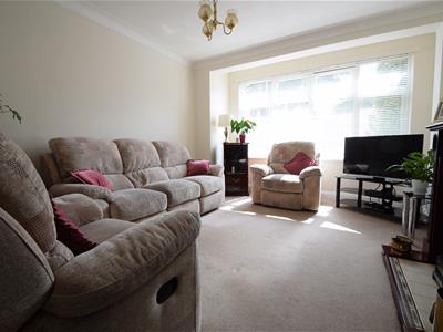 4.42m into bay x 3.66m max into recesses (14'6 intNeutral colour carpet, neutral emulsion painted walls, UPVC double glazed windows, ornamental wood and tiled fireplace surround with solid fuel effect gas fire, double radiator, ceiling light fitting.