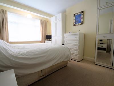 3.66m x 3.35m max into recesses (12'0 x 11'0 max iWhite painted wood panelled door, cream colour carpet, cream emulsion painted walls, built in wardrobe, UPVC double glazed window, radiator, ceiling light fitting.
