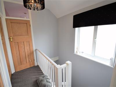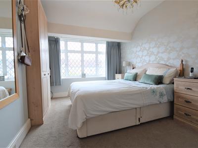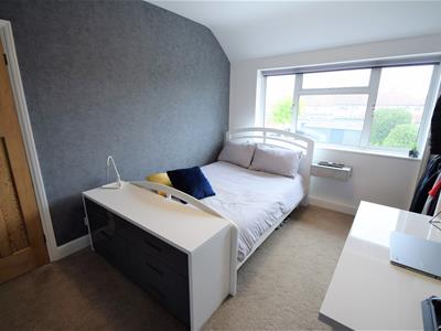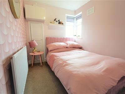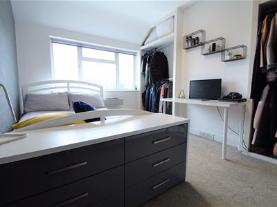 2.44m x 2.06m (8'0 x 6'9)Solid wood panelled door, neutral carpet, pastel colour emulsion painted walls with two wall papered feature walls, eaves cupboard, corner "double aspect" double glazed window, radiator, ceiling light fitting.