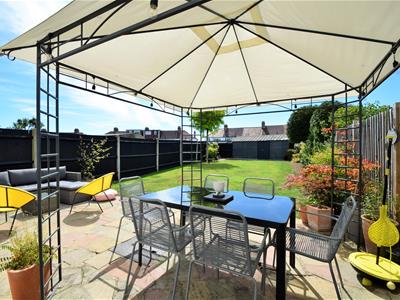 The garden is one of the largest in the street, with the property being both end of terrace and on a bend in the road, which means an already wider than average garden widens even further, at it's widest being circa 30ft. To the end of the garden is a large detached garage.