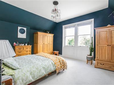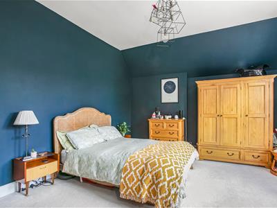 4.98m narrowing to 4.85m x 4.88m narrowing to 4.04Solid wood painted panelled door, twin wooden double glazed sash windows to front, 'Stiffkey Blue' emulsioned walls, airvent, underfloor heating control, fitted carpet, ceiling light fitting.