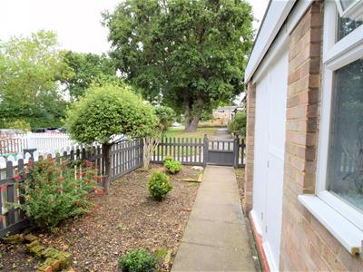 There is an attractive picket fenced front garden which overlooks a spacious green with direct views of a beautiful mature Oak tree. There is also a courtyard style rear garden with good sized patio, outside storage and a rear access gate.